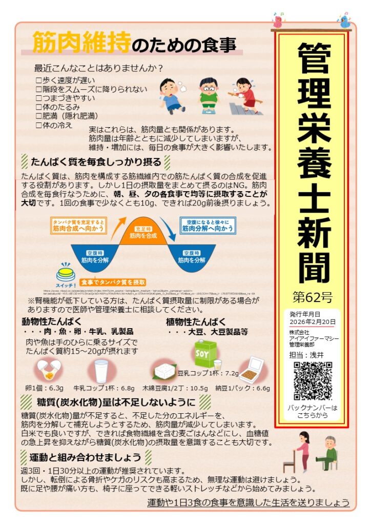 健康情報管理栄養士 管理栄養士新聞第62号~筋肉維持のための食事~