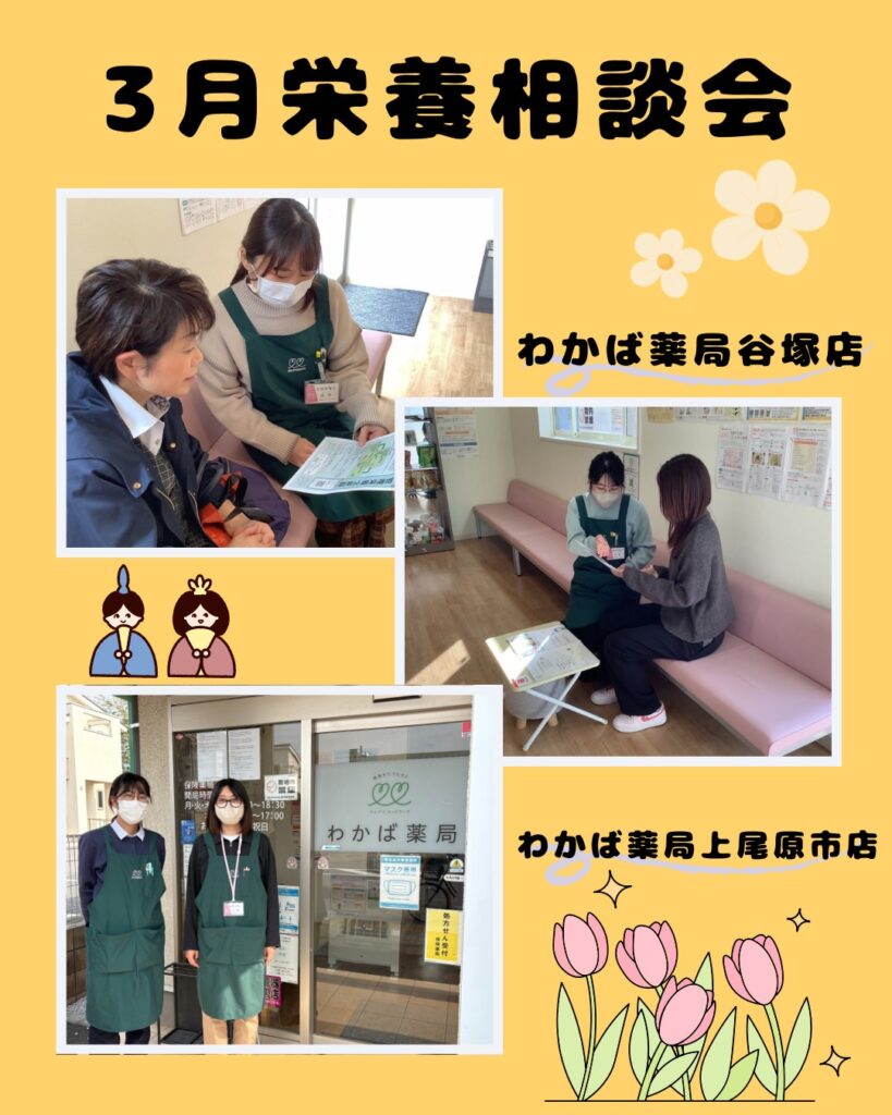 2/2(月)にあおば薬局とわかば薬局浦和美園店の2店舗にて栄養相談会を開催いたしました! あおば薬局では、大人の方向けに普段の食事の塩分やた...